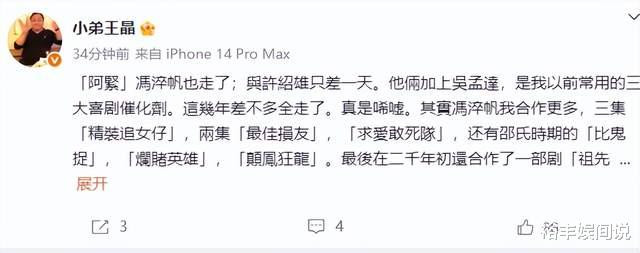 随后,诸多来自香港的艺人纷纷发文悼念,其中与其在23年闹过矛盾的王晶也发文追思,并曝光了诸多细节。他透露,冯淬帆去世的时间与许绍雄只差一天,但这样的“曝料”实在是有些不正确。